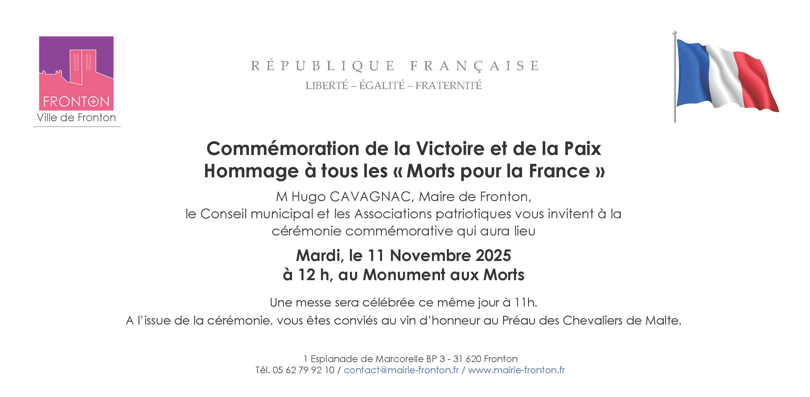 Rendez-vous au Monument aux morts de Fronton le mardi 11 novembre à midi: