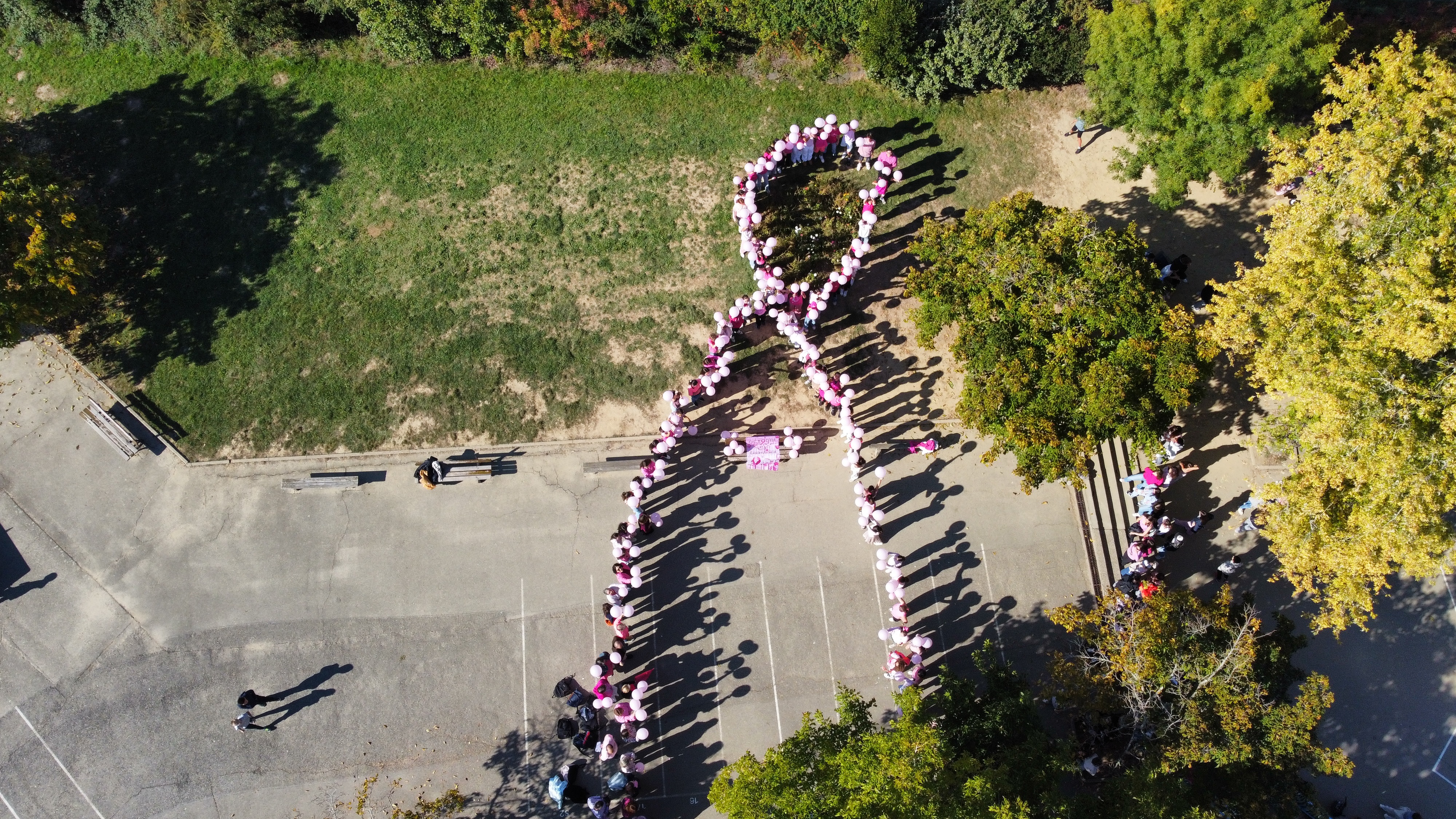 Les élèves et les personnels, vêtus de rose et munis de ballons, ont créé un symbole puissant d'espoir et de solidarité. Un grand bravo à tous